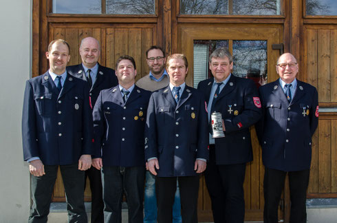 v.l. Robert Bauer, KBM Jochen Mann, Daniel Suffa, 1.Bgm Markus Mönch, 2.Kdt Stefan Suffa, Vorsitzender Hans-Georg Frank, Kdt Helmut Geßlein