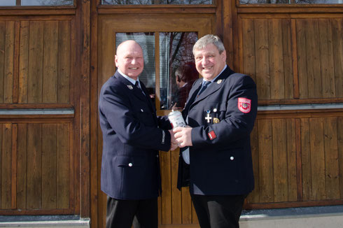 Helmut Geßlein erhielt aus den Händen des 1. Vorsitzenden Hans-Georg Frank den Ehrenkrug für seine 25-jährige Treue zum Verein.