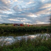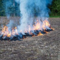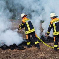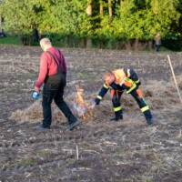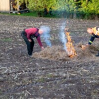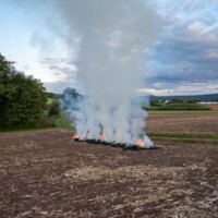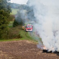 Um dem Ganzen einen realistischen Hauch zu verleihen, wurden auf einem abgeernteten Feld mehrere Strohballen locker verteilt und in Brand gesetzt.