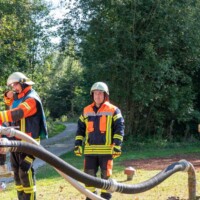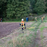 Hier wurden 2 Versorgungsleitungen vom Unterflurhydranten und aus einem Wasserbassin durch die Kameraden aus Trübenbach zur Wasserabgabe ans Weidhausen 43/1 sowie 41/1 verlegt.