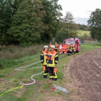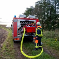 Ziel war es, den Brand mit dem mitgeführten Wasser (750 Liter) unseres TSF/W 46/1 zu löschen. Für den Ernstfall stand ein Teich in unmittelbarer Nähe zur Verfügung. Zum Einsatz kam eine C-Leitung mit Verteiler und zwei D-Schlauchlängen mit Hohlstrahlrohr.